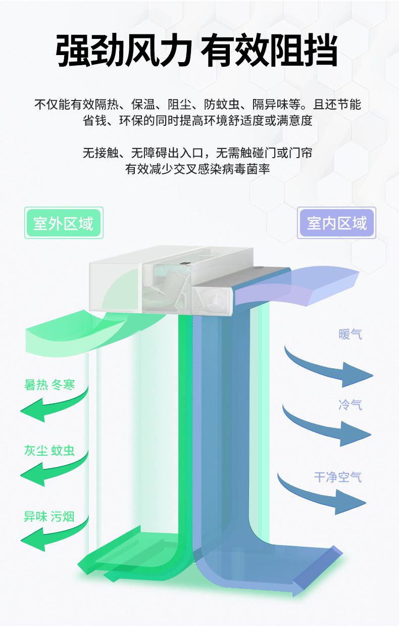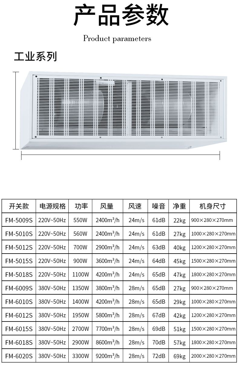 1、工業(yè)風(fēng)幕機采用金屬電鍍烤漆噴涂外殼,防銹美觀,堅固耐用不易變形,長方形結(jié)構(gòu)鉚接固定更牢固穩(wěn)定。